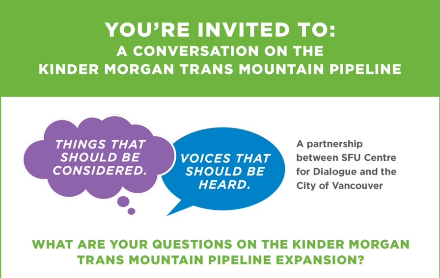 As discussions about the Kinder Morgan Trans Mountain Pipeline proposal continue, the City of Vancouver and SFU Centre for Dialogue are inviting the public, with a focus on youth aged 30 and under, to participate in an open forum on June 24, 2014 to discuss their views on the pipeline expansion proposal.